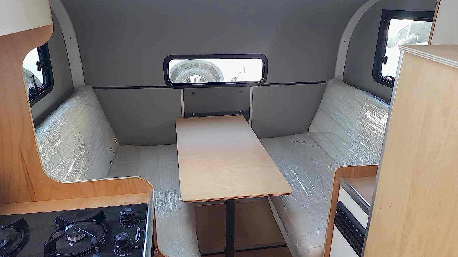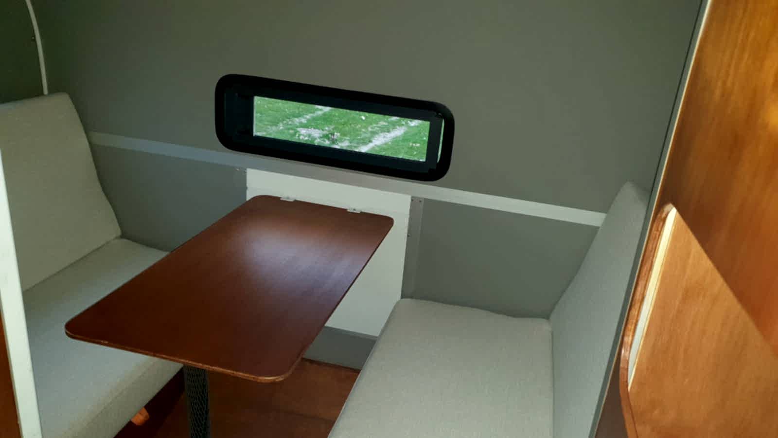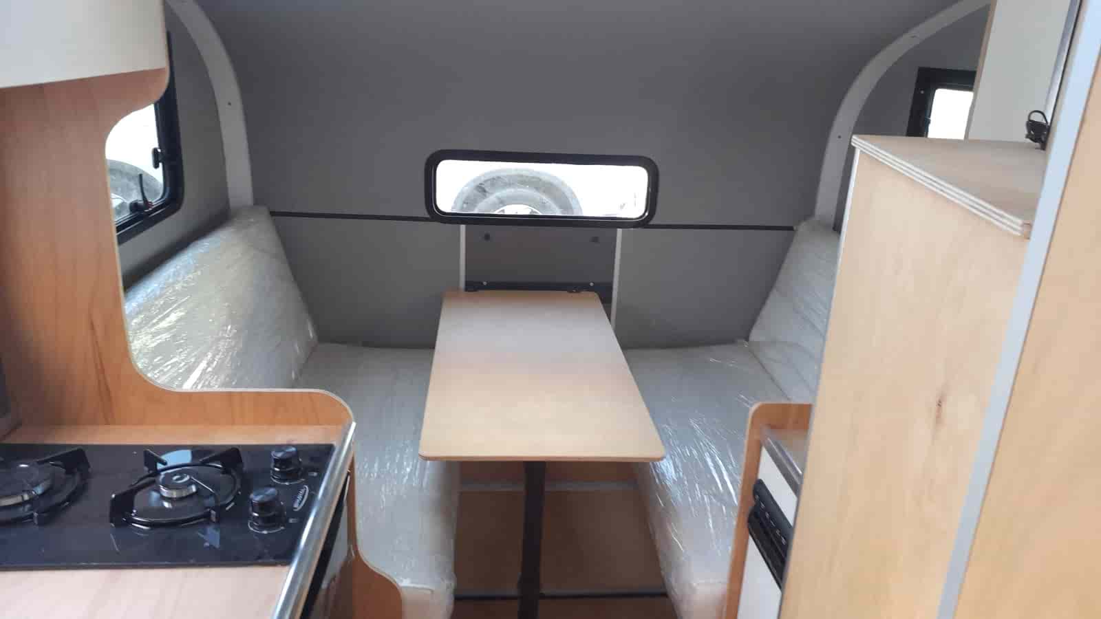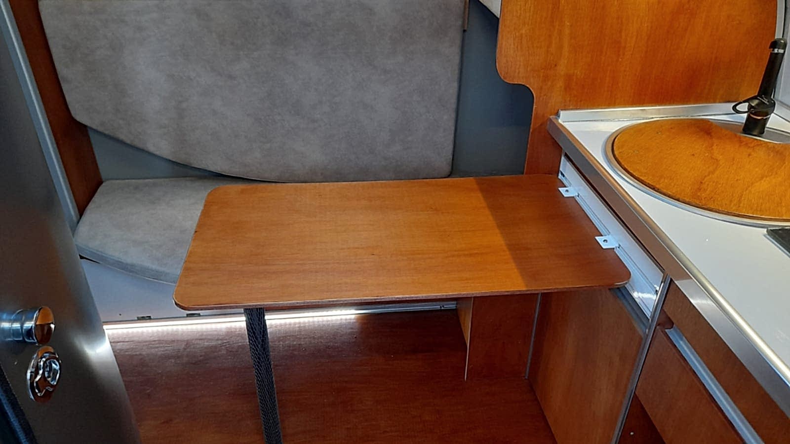 ✔ 50 x 100 cm katlanabilir yemek masası — karavan içi veya dış cephede 3 farklı konumda kullanım