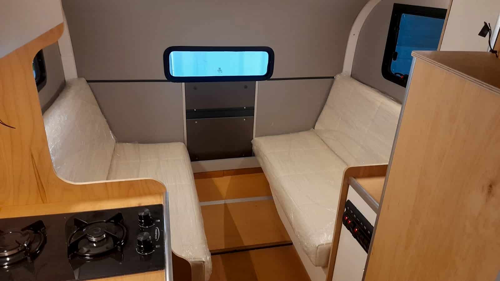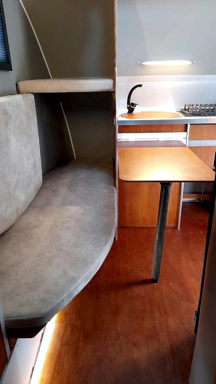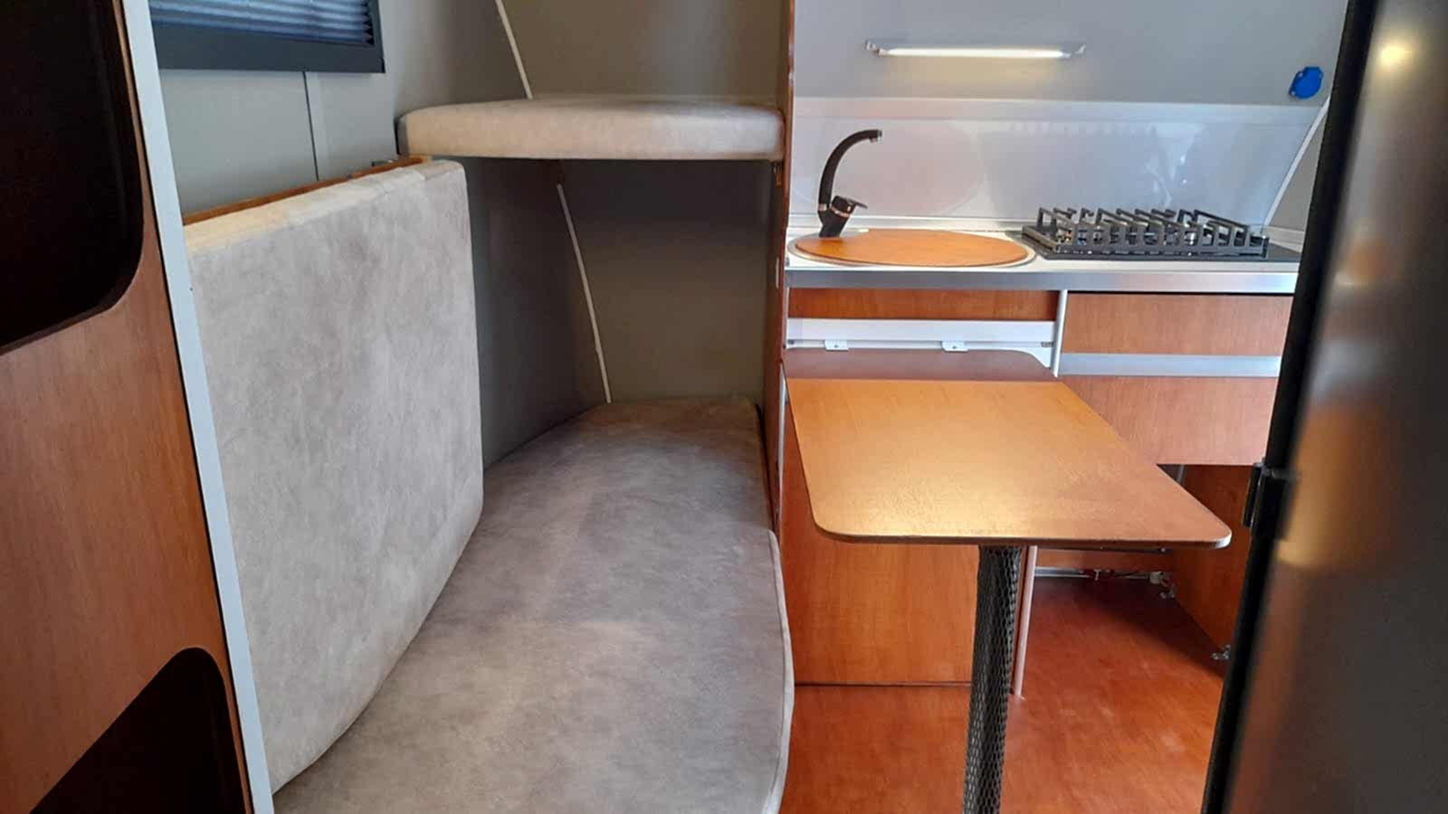 ✔ 50 x 100 cm katlanabilir yemek masası — karavan içi veya dış cephede 3 farklı konumda kullanım