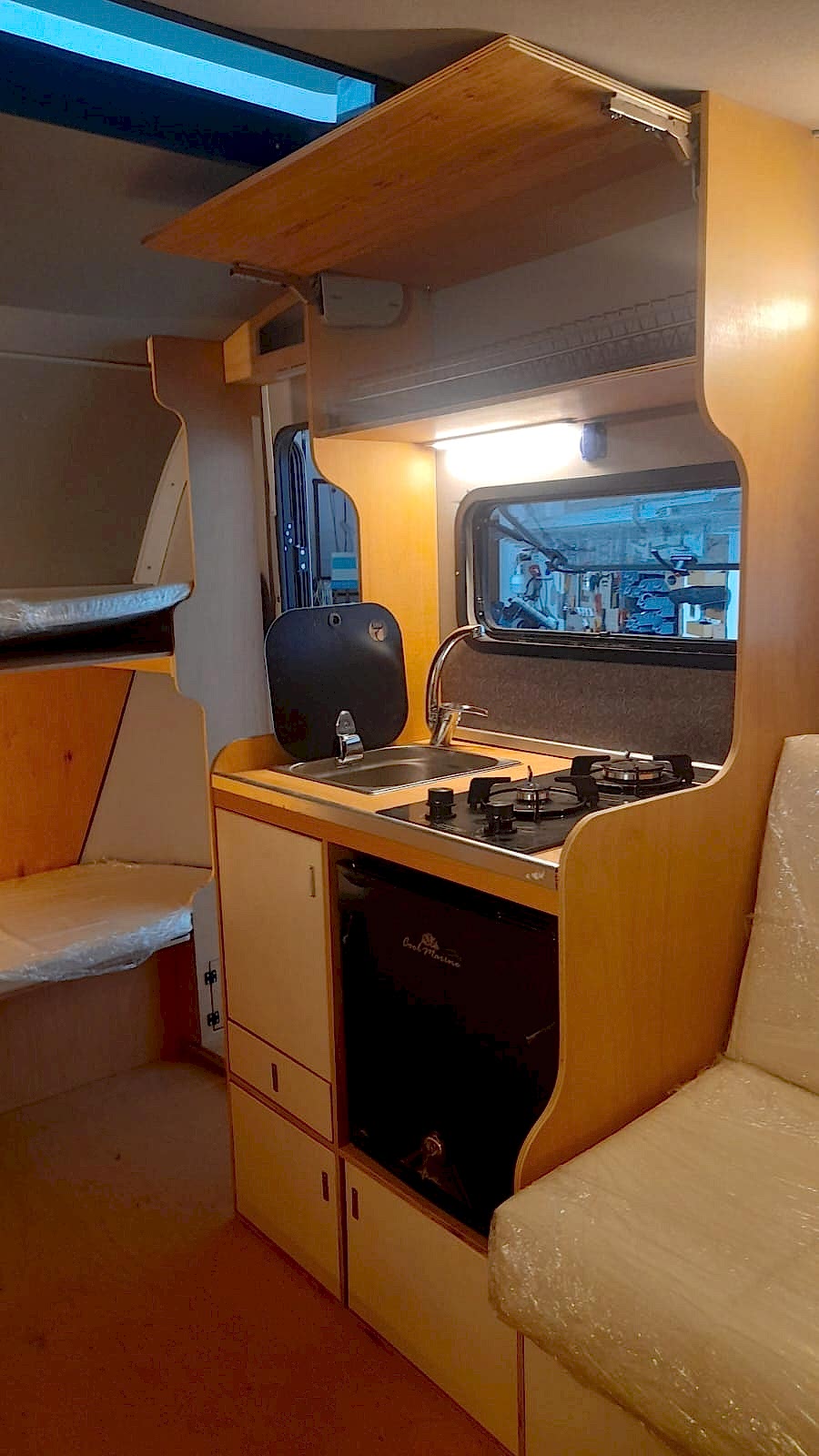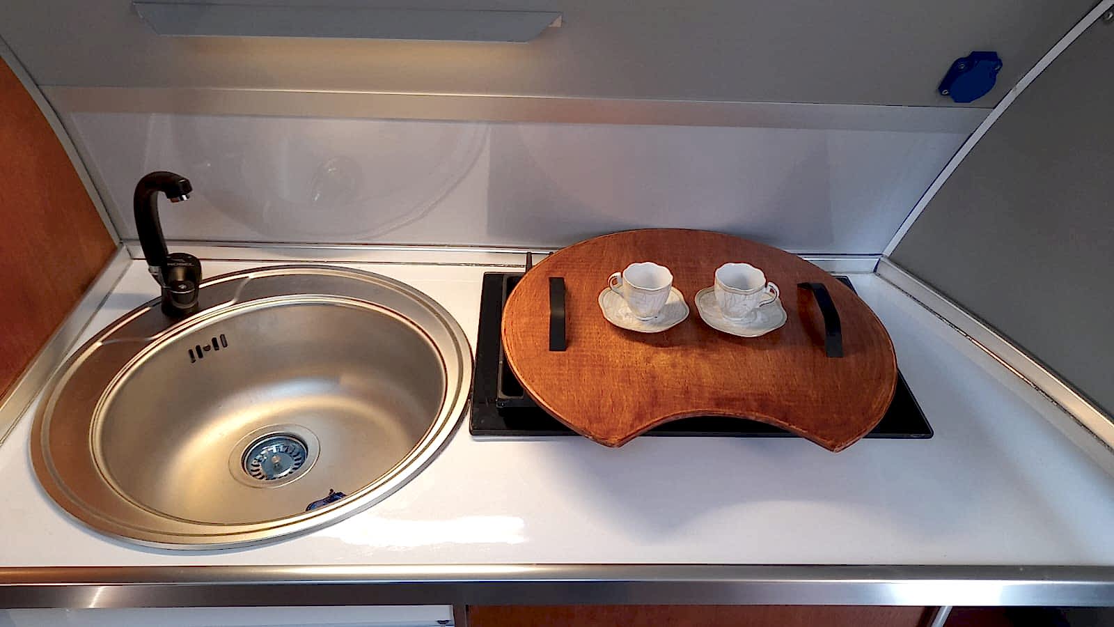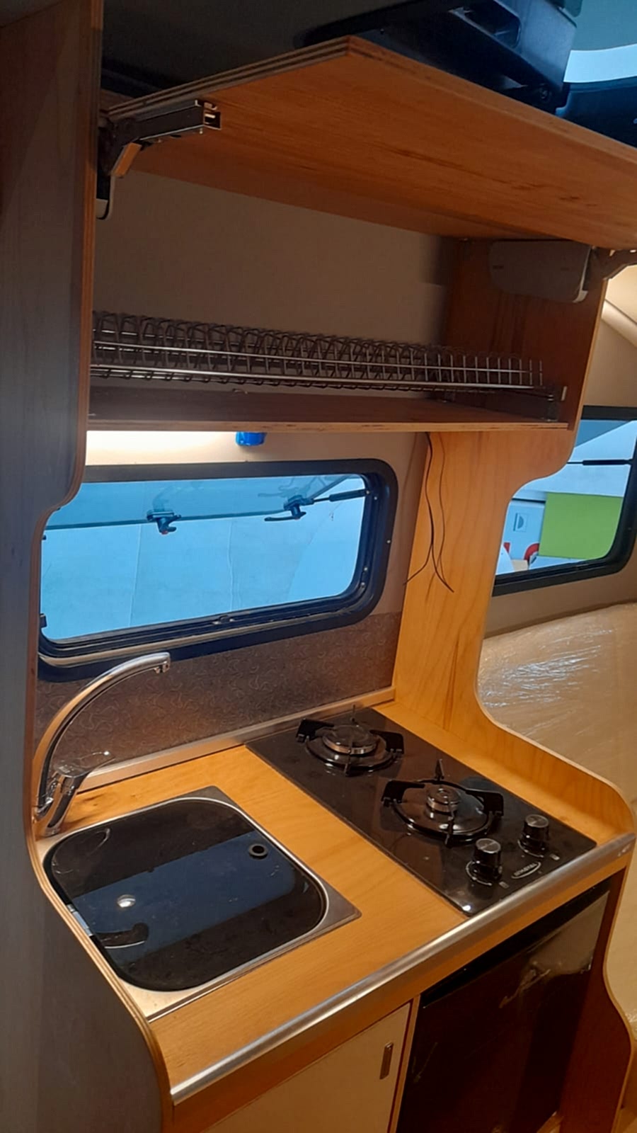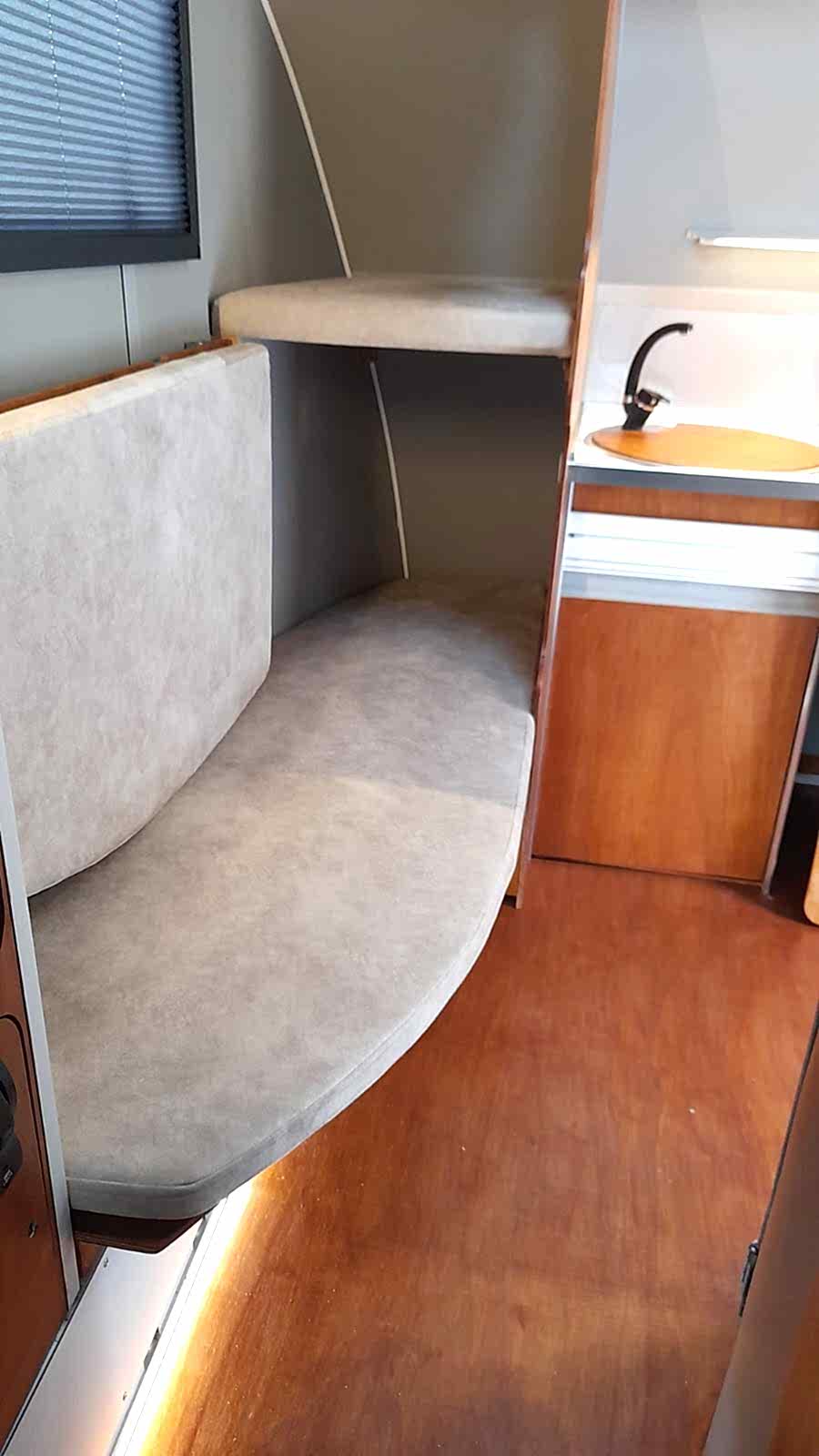 ✔ 50 x 100 cm katlanabilir yemek masası — karavan içi veya dış cephede 3 farklı konumda kullanım
