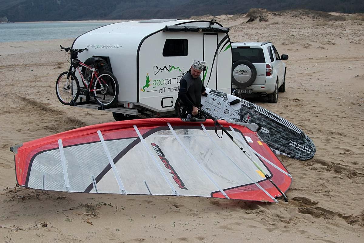 Windsurf , Kitesurf, Paragliding, Paramotor, Treking, Dağ bisikleti, Kayak, Scuba diving , Kano , Şişme bot yada kamp ekipmanları için gerekli ve yeterli ıslak ve kuru depolama alanlarına, pratik malzeme bağlama sistemlerine sahiptir. T KANALLI ALÜMİNYUM profillerden oluşan gövde üzerinde onlarca değişik malzemeyi kolaylıkla karavana bağlayabilir ve kullanım sonrası kolaylıkla sökebilirsiniz.