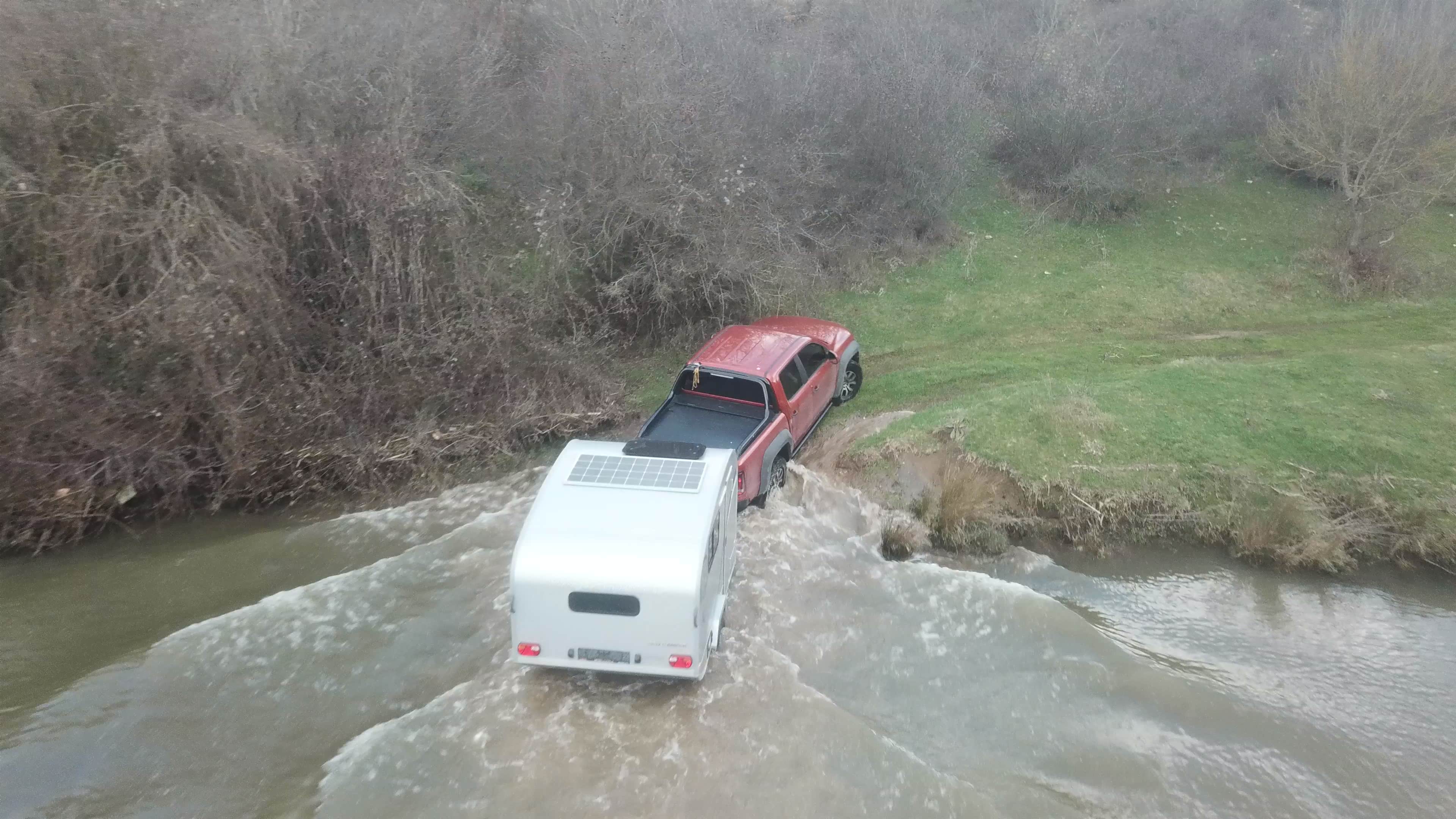 - Derin su geçişlerinde 50 cm derinliğe kadar sulardan sorunsuz geçersiziniz. 26 derecelik kuyruk ayrılma açısıyla V geçişlerde karavan kuyruğu takılmadan ilerleyebilirsiniz. Opsiyonel BAĞIMSIZ SÜSPANSİYON seçeneği ile daha zorlu arazi koşullarda da daha güvenle yolunuza devam edersiniz.
